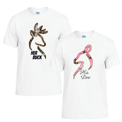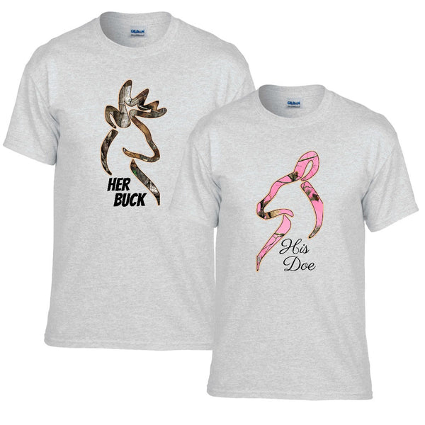 This classic Her Buck and His Doe design is always a favorite with our Couples! You get both unisex tee's! Need larger than shown? We do special orders!