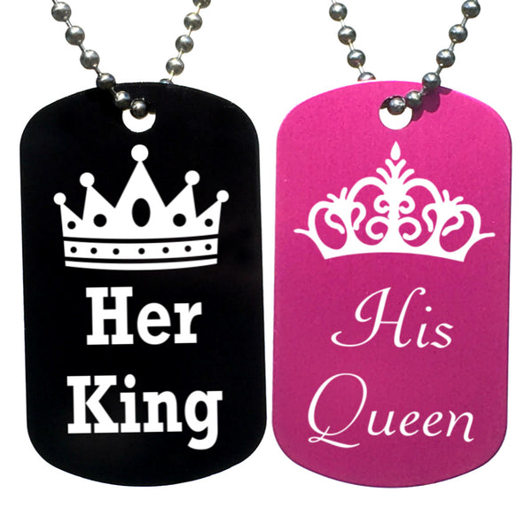 Her King & His Queen Dog Tag Necklaces (Pair)