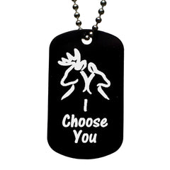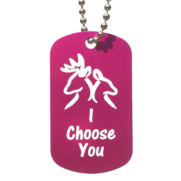 "I choose you" with a Buck and Doe design is sure to put a smile on your loves face! This original design lets them know you will always have their back. The tag is sold individually and only one will be added to the cart.