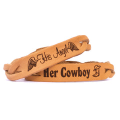 Her Cowboy & His Angel Leather Bracelets (Pair)