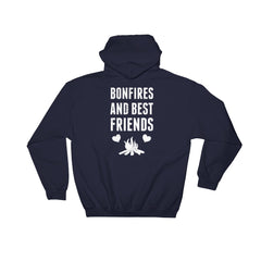 The "Bonfires and Best Friends" is a back design. The front is blank. Want it in a different color? Contact us!