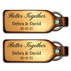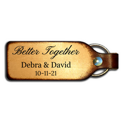 This perfect couple's keychain makes a great gift. Made with durable cowhide leather, hand tooled, and laser engraved with your names and special date.