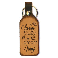 "Classy Sassy and a Bit Smart Assy" Leather Keychain is a perfect anytime gift for that girl with a little bit of Attitude and Proud of it! Made to order and beautifully hand stained.
