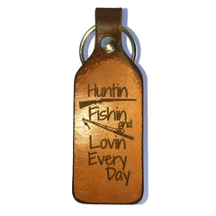 Huntin' Fishin' & Lovin' Every Day Keychain is for the guy that is hard to buy for but has his priorities right! Stained a beautiful brown.