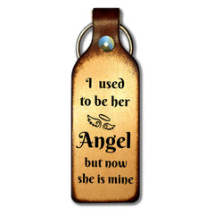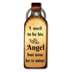 This keychain is a beautiful sentiment for those of us missing a lost loved one. This design is in memory of my daddy but can be for anyone that thought of us as their angel. I am sure all of us girls regardless of our age can relate. This item can be customized and a back engraving is available. Stained a beautiful brown.