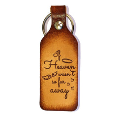 If Heaven wasn't so far away leather keychain is a wish many of us have of wanting just one day with our loved ones that have left us to soon. This item can be customized and a back engraving is available. Stained a beautiful brown.