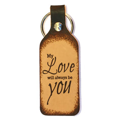 "My Love Will Always Be You" Leather Keychain is such a sweet way to let that special someone know your love is meant to be. What girl would not love this sentiment!? Made to order and beautifully stained.