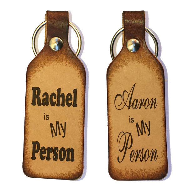 "My Person with Custom Names" Leather Keychains is a couples set. Surprise your love! You get both designs for one price. Only add one to the cart.