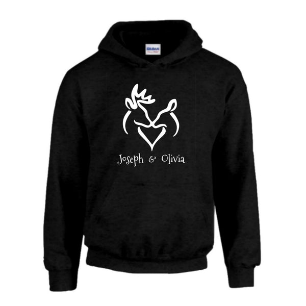 Our Classic Snuggling Buck and Doe Hoodies now come personalized with your name! Also available in Navy and White (Not Shown)
