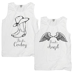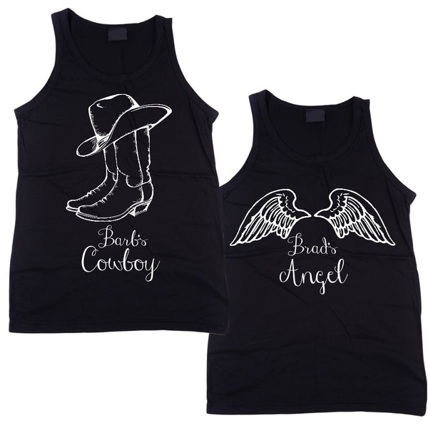 This fun design comes with your names personalized as Her Cowboy and His Angel. Don't see the colors you want? Request your favorite! There is a good chance we can do it!