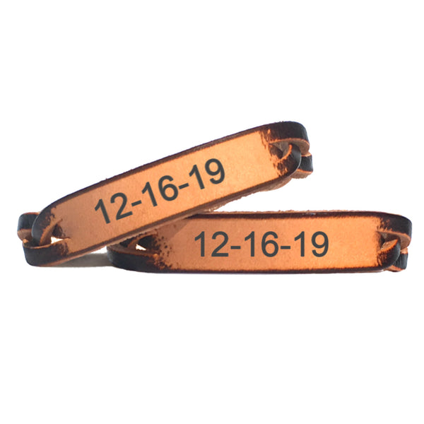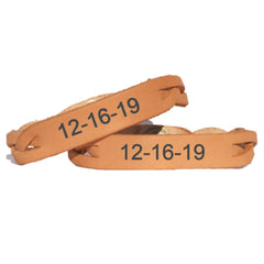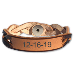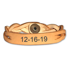Celebrate a special date with this personalized leather bracelet. Choose from beautiful rich brown stain or all natural leather.