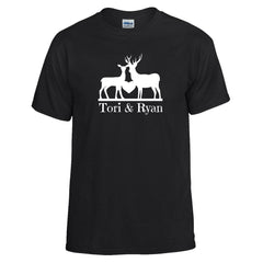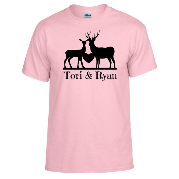 This Doe loves her Buck and she loves wearing it proudly! The darker tee's have a white design and the lighter tee's have a black design. This is made to order and can be customized to your liking!