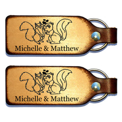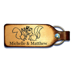 This cute "Squirrel Couple" Leather Keychain is stained a beautiful and rich dark brown and comes with free name engraving.