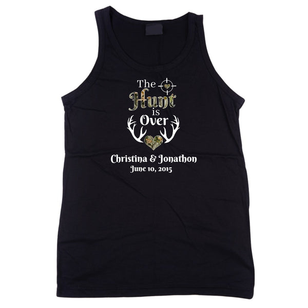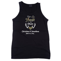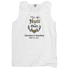 "The Hunt is Over" Personalized with Your Names and Date Tank Top is a perfect way to commemorate that special day! A great wedding gift! A fun everyday tank top for those couples that aren't afraid to admit I am done looking! I have my one!! Grab yours for summer apparel that no one else will have!