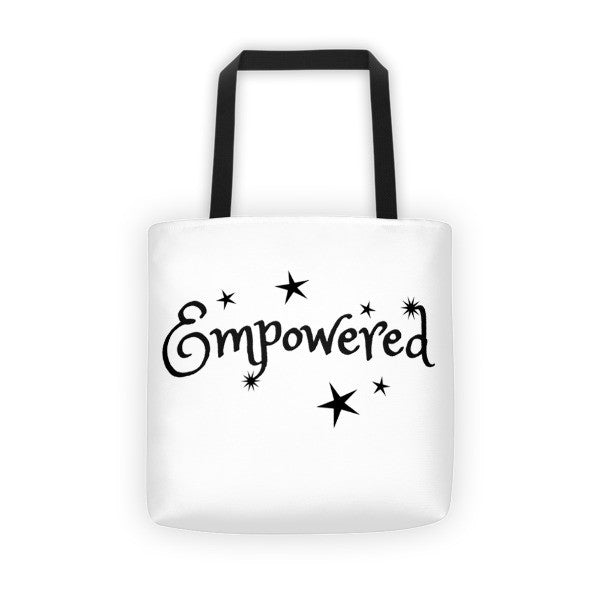 "Empowered" tote bag. Bring your favorite design everywhere you go. Matches the Tee's and Tanks! Strong statement on who you are! You are in control of your life! Perfect gift of motivation! Such a great reminder...