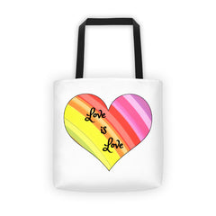 The "Love is Love Rainbow Heart" Tote matches your favorite Tee or Tank and is perfect for those wanting to show their support or advocate for the LGBTQ community. Get one for you and your friend! We are stronger when we stand united for the human right that every human deserves Love.