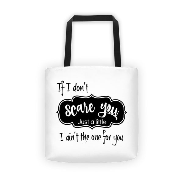 If I don't scare you just a little, I ain't the one for you tote. We all know feelings are scary and when you meet someone that scares you because they make you feel... They are worth investigating! Bring your favorite design everywhere you go.