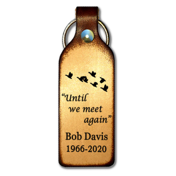 Keep your loved one close with this heartfelt saying. "Until We Meet Again" is a beautiful sentiment laser engraved into this memorial keychain. Name and dates are complimentary. makes a wonderful memorial gift.
