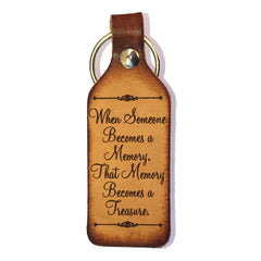 When Someone Becomes a Memory Leather Keychain is a beautiful sentiment of missing a lost loved one. This item can be customized and a back engraving is available. Stained a beautiful brown.